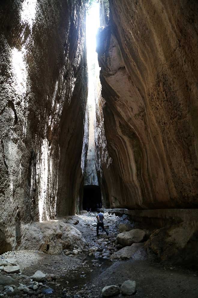 Tümüyle dağ içine oyulan tünel, 1380 metre uzunluğunda, 7 metre yüksekliğinde ve 6 metre genişliğinde.nO dönemlerde yapılan ve kimi noktaları deprem ve sel suları nedeniyle yok olmuş taş basamaklarla ulaşılan tünel, eşsiz manzarayı da misafirlerine sunuyor.