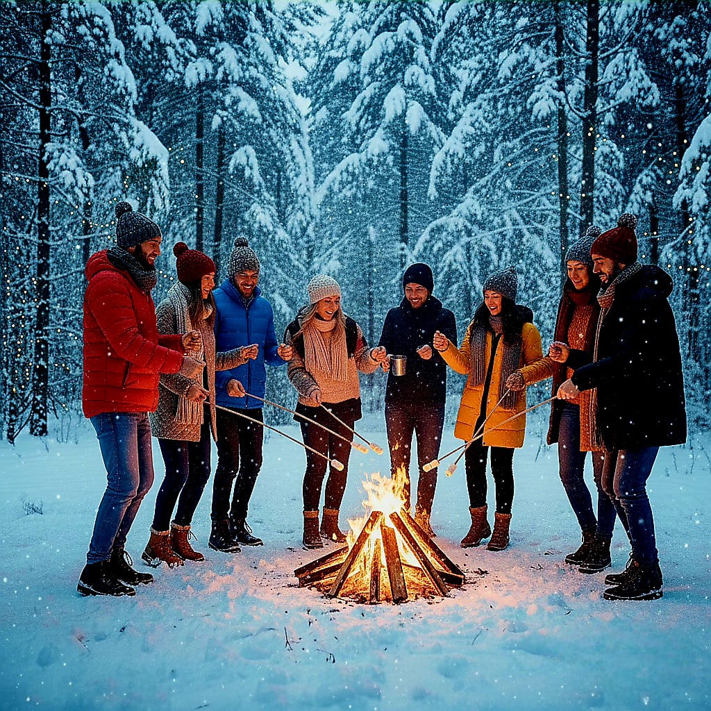 * Yıldızların altında kamp ateşi çevresinde sıcak sohbetler