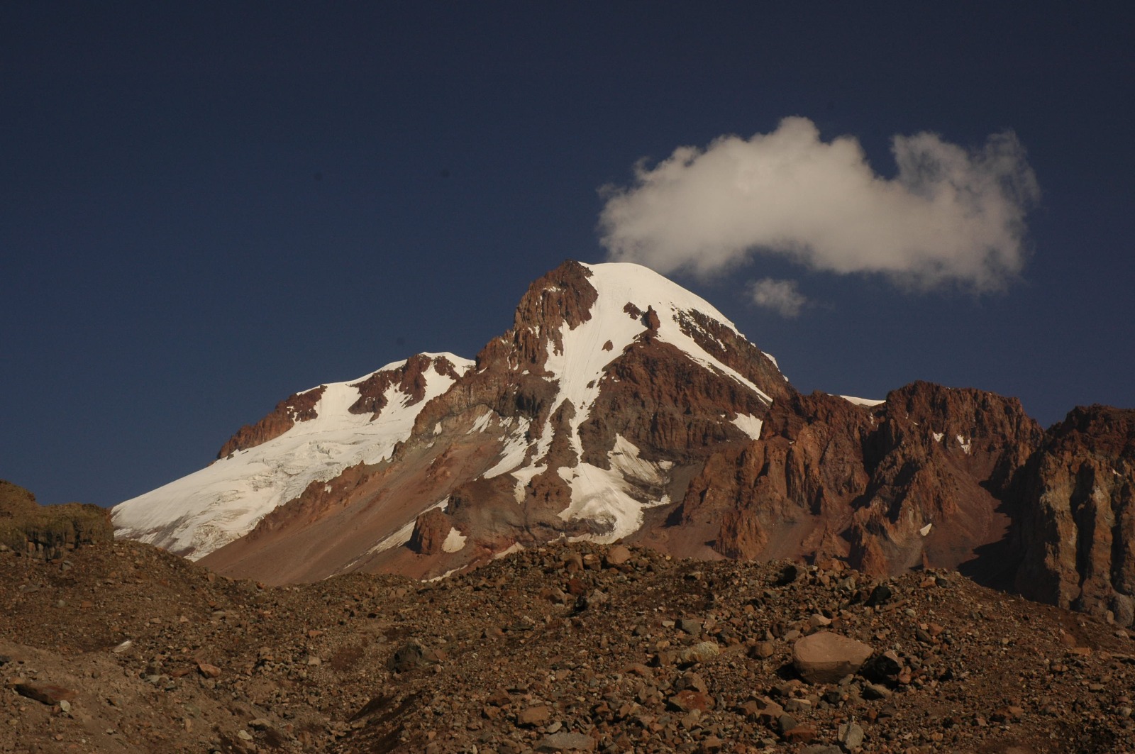 Kafkas Dağları’nın en etkileyici zirvelerinden biri olan Kazbek Dağı (5054 m), geniş buzul alanları ve klasik tırmanış rotasıyla yüksek irtifa dağcılığı için önemli hedeflerden biridir.