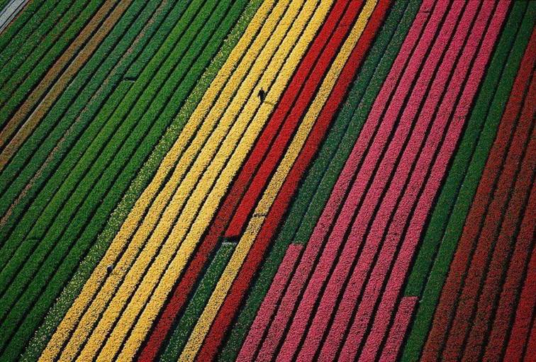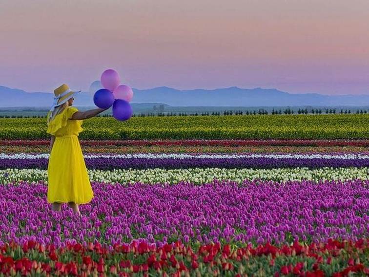 Su kanalları ve yemyeşil tarlalar arasında ilerlerken; turuncu, pembe, mor, kırmızı, sarı ve beyaz renklerde uzanan lale şeritleri Konya Ovası üzerinde adeta bir gökkuşağı oluşturur.